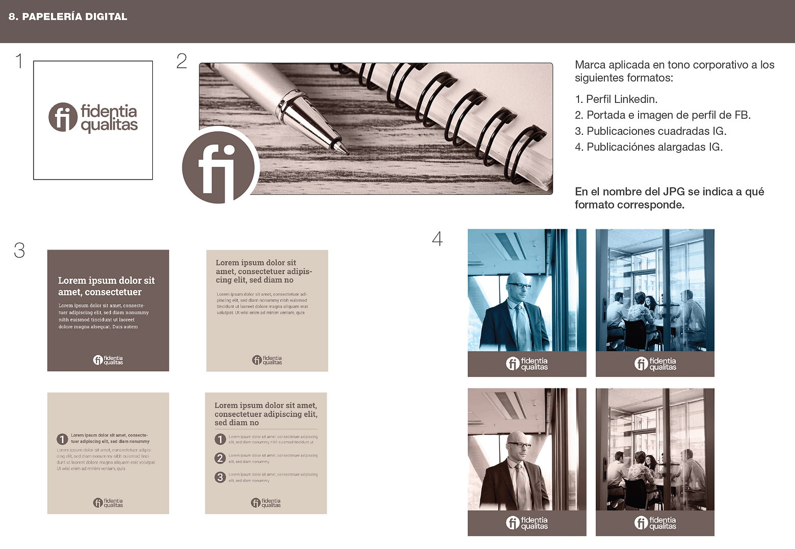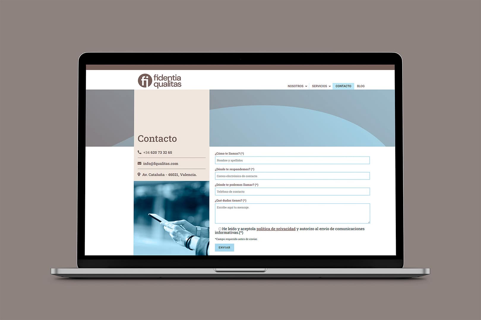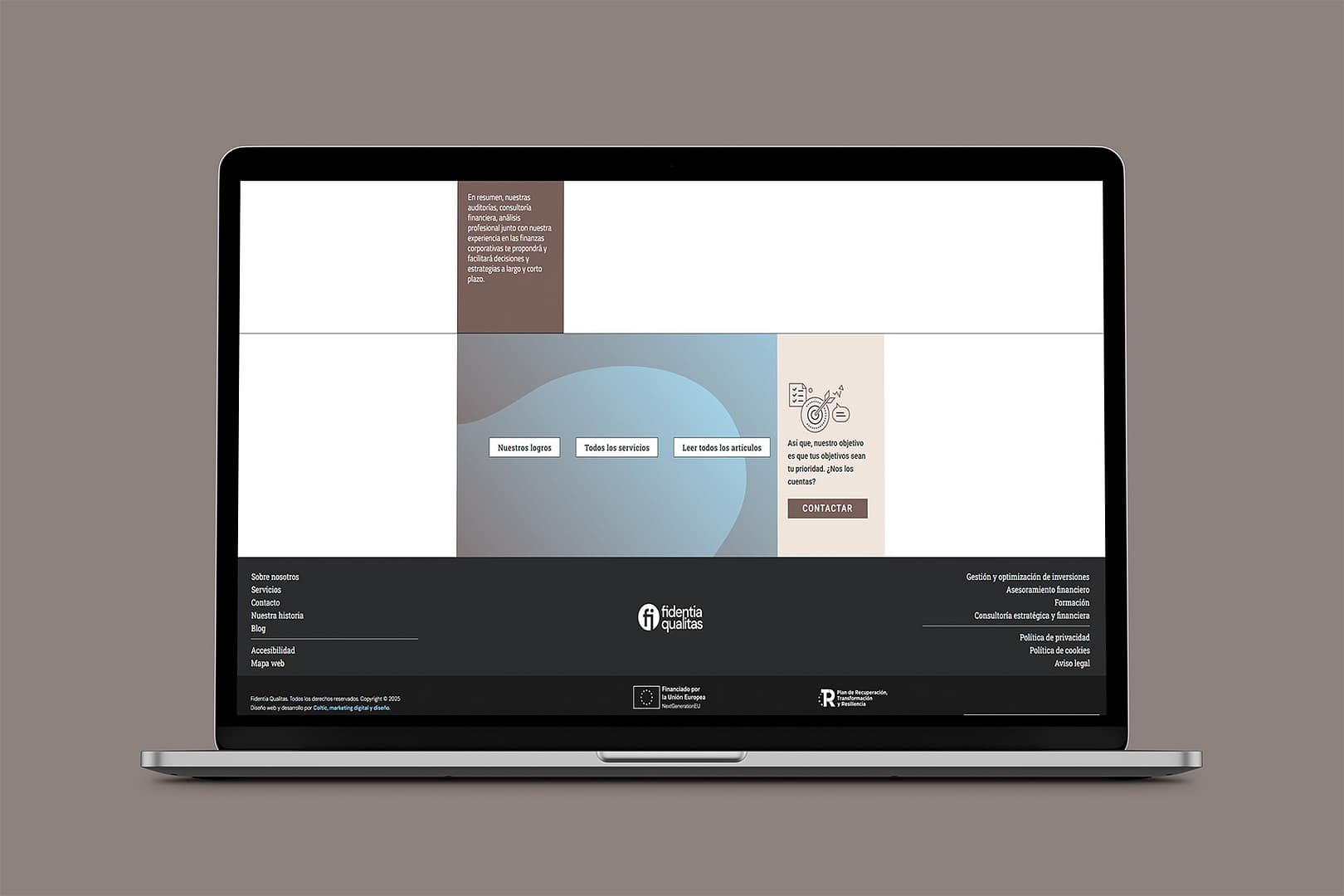 Identidad gráfica para la web de Fidentia Qualitas, empresa de consultoría estratégica y financiera, asesoramiento financiero y gestoría de inversiones.